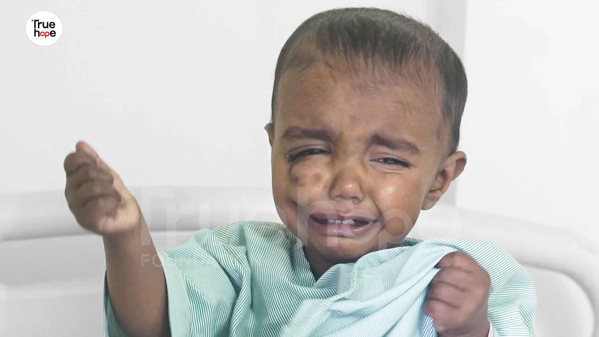 Children his age are learning how to laugh and crawl, here I see my child learning to live with pain. There is not a single day or night when he is comfortable. He cries often, especially at night, and all I can do is hold him close and pray that his suffering goes away.